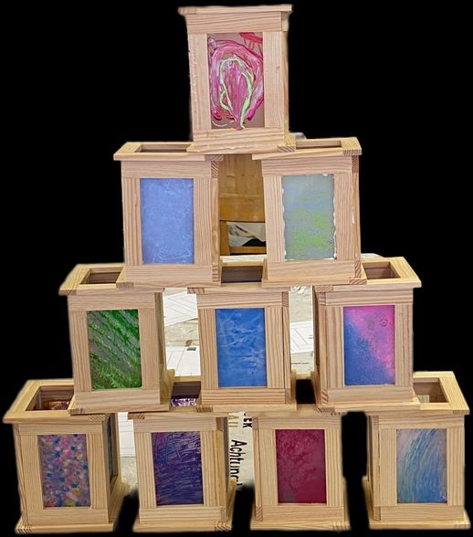 Aus Kapla-Hölzern und Kreativfolie bauen und gestalten wir eine Laterne.