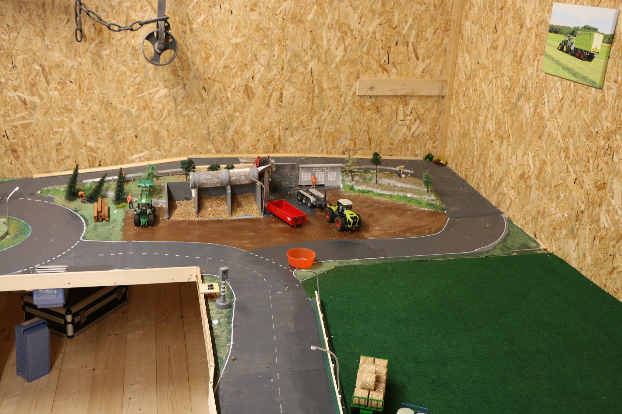 Du kannst mit ferngesteuerten Traktoren und Kipper Getreide auf und Abladen. Im Kieswerk Kies laden und kippen. Im Acker pflügen und eggen.